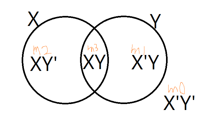 입력 변수가 X, Y일 때 m0 ~ m3인 경우가 발생한다. (m = minterm)